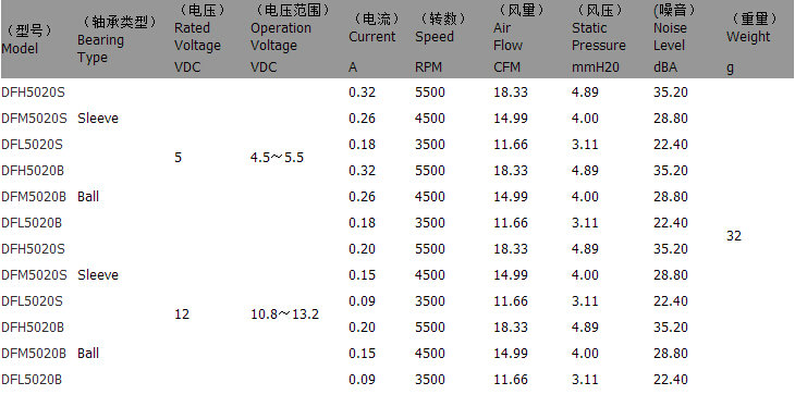 直流风扇详细信息: 加工定制:是 风量:4.5-7.22 类型:直流风扇 电流:0.08-0.2(A) 适用范围:散热,通风,制冷 型号:5020 转速:4000-6000(r/min) 电机功率:31-32(w) 风叶直径:134mm 厂家:广东东莞 电压:5-12(V) 直流风扇产品展示: 直流风扇产品参数: